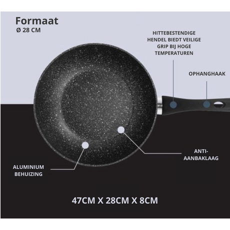 Wokpan Ø 28cm Inductie Anti-Aanbak Alle Warmtebronnen PTFE en PFAS vrij