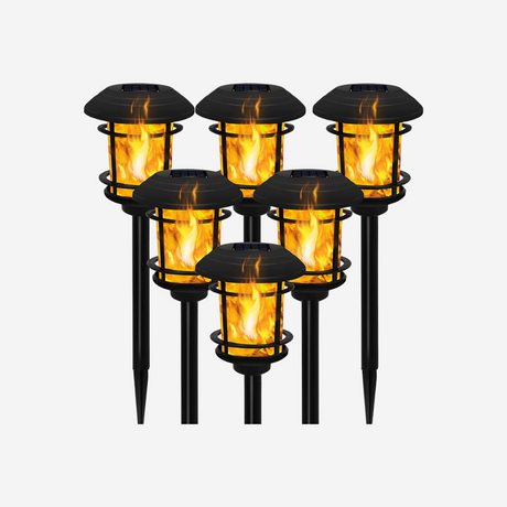 Solar Tuinfakkels zwart 6 stuks 50 cm vlam-effekt tuin en padverlichting buitenverlichting op zonneenergie IP65